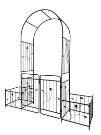 Metal Garden Arch with Gate 79.5'' Wide x 86.6'' High Climbing Plants Support Rose Arch Outdoor Black
