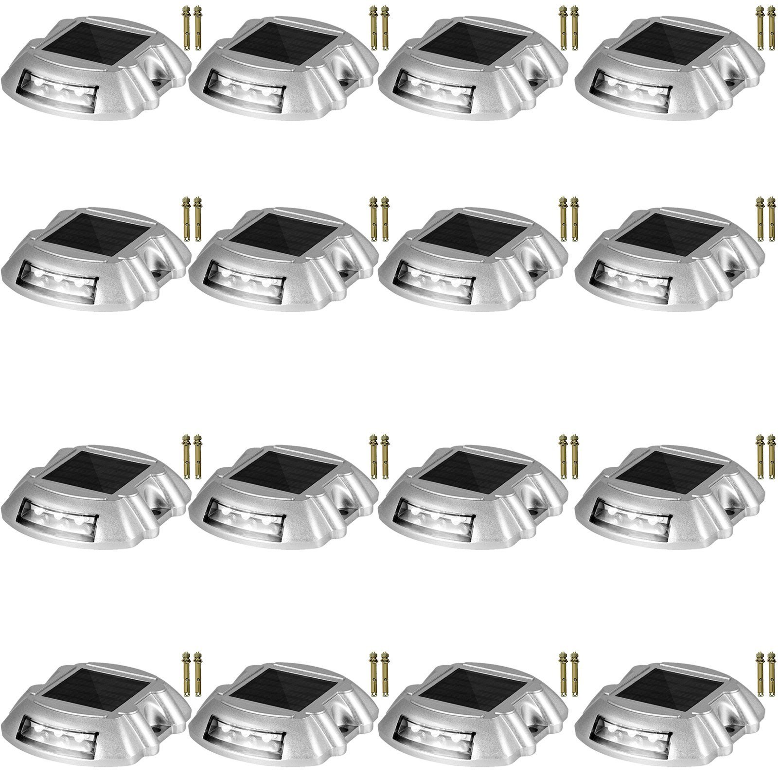 3.Super Bright LED Light: Light intensity: 400-500Lux. Each solar driveway light is equipped with 6 PCs 0.2" high-brightness white LED lights, illuminating the space within a radius of 875 yards. Built-in 600mAH large storage battery ensures enough working time.