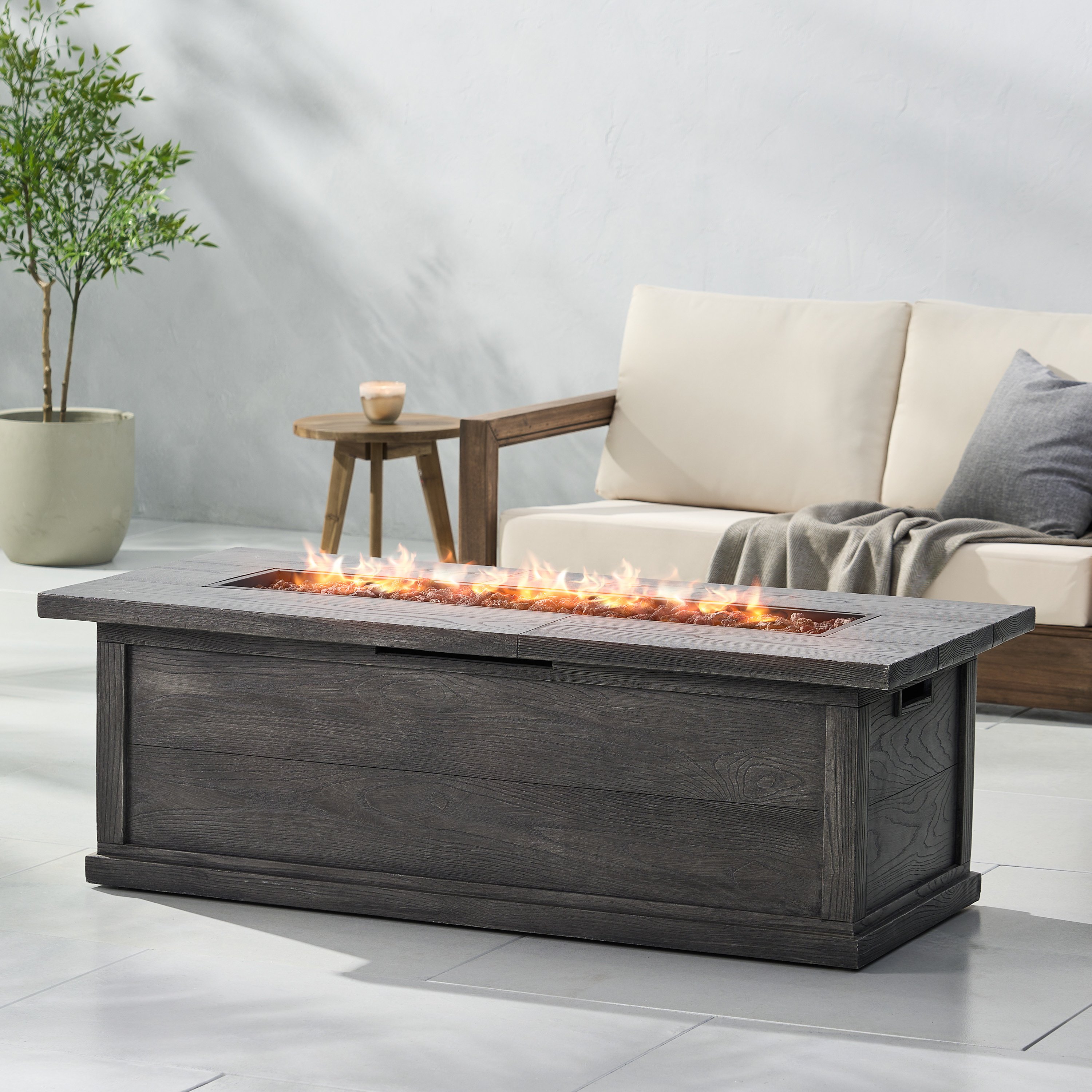 Home > 56" Outdoor 50,000 BTU Rectangular MgO Concrete Propane Fire Pit, Grey Wood Pattern (Tank Cover not Included)